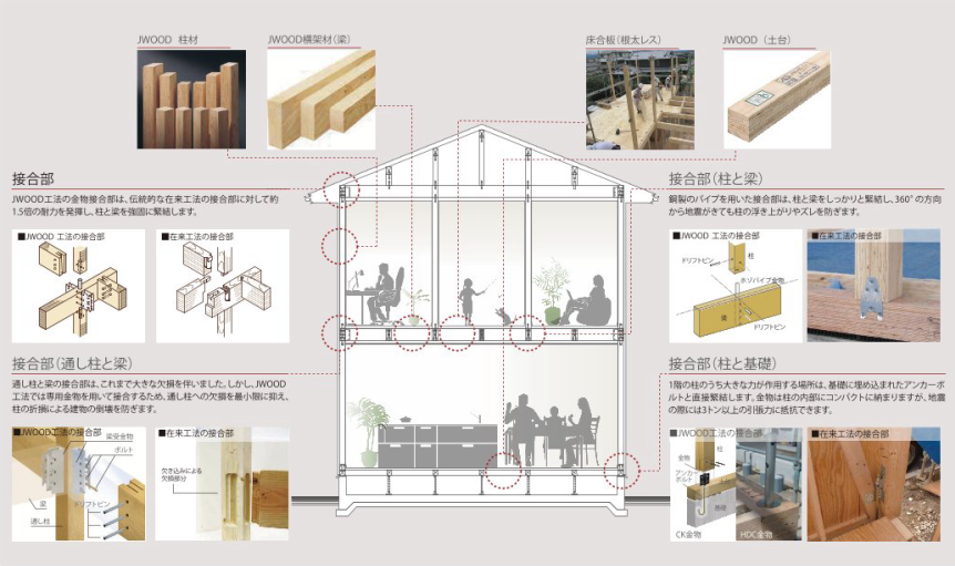 強靭な構造用LVL「JWOOD」を専用金物で緊結した 強固な構造体「JWOOD工法」